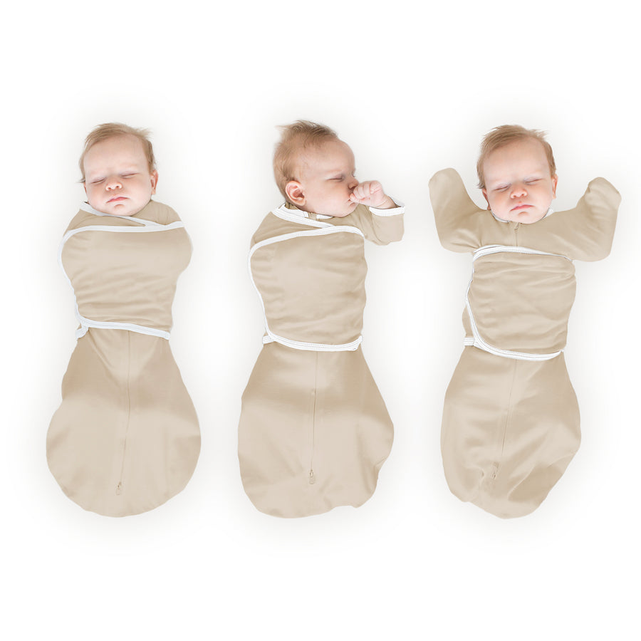 The Omni Swaddle Sack is a great choice for snugly swaddling a newborn, for a 4-week-old baby who likes to suck on their hands, for a 8-week-old baby who likes to sleep with one arm outside the swaddle, and a 12-week-old baby who can rollover and needs both arms up and not under the wrap. The Omni can accommodate all these stages of development