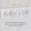 The SwaddleClub QR code on the back of the label provides easy access to white noise, short baby care videos, and safe sleep information to help parents learn how to calm and comfort their baby.